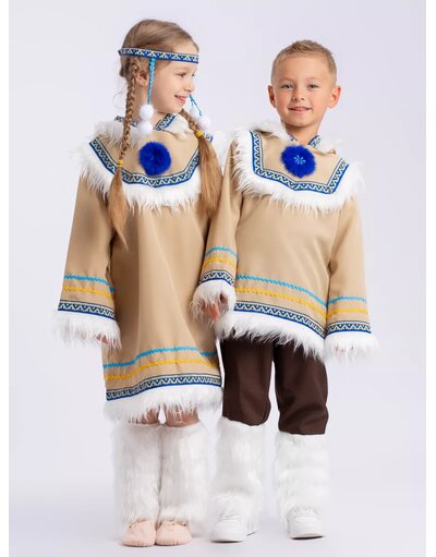 The Eskimo costumes for girls and boys are often used for Halloween, folk parties, International days or culture festivals. In fact, such cute Chikchi dress will go perfect for any event!