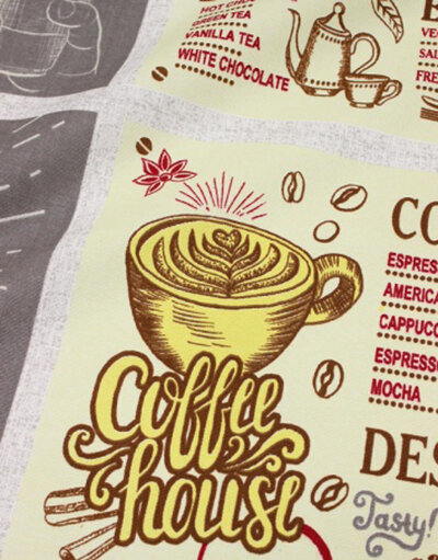 The kitchen collection is mostly presented by simple cotton, Panama weave cotton and waffle cotton fabrics.