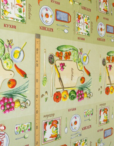 All great kitchen prints are available in fabric by the yard. The fabric produced in Russia is a perfect idea for home decor items like curtains, bedding, pillows and dining.