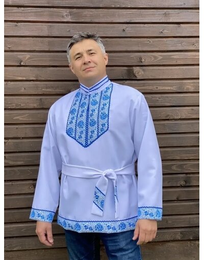 Kosovorotka is a traditional Russian shirt from old Slavic times. Traditional Russian shirts made of cotton are offering best Russian traditions in the most popular example. Highlighted with stylish embroidered ribbon at the collar and chest along two sides. Russian shirt can be worn with or without belt. Ethnic touch will add special charm to your look. This Russian shirt is individually made, not factory mass produced. Different colours are available.