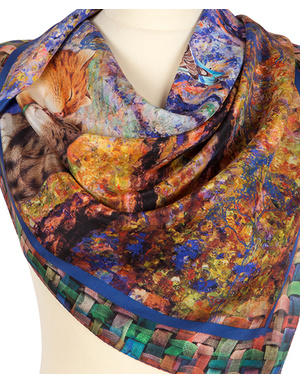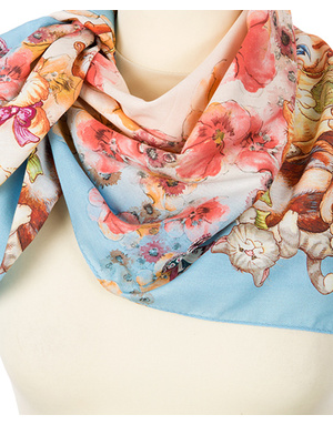 This Russian scarf of size is made of serge cotton, with no fringe. All these cotton Russian shawls from Pavlovo Posad are in cream colour, no printed background, that give them additional softness. The design is bright and positive. Amazing and cute pictures come to life under the painter's brush.