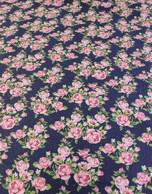 Tissu coton fleuri au metre ''Red-Blue Flowers On White''}