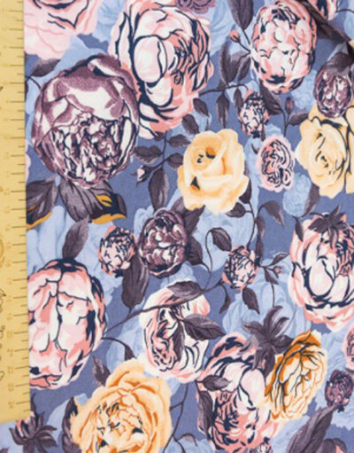 {[en]:Flannel cotton fabric ''Peonies on grey''}
