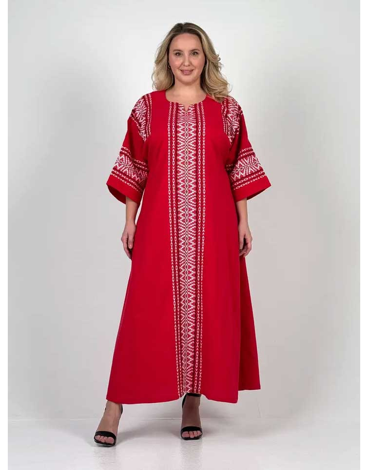 Avec une impression classique cette robe rouge a tout de ce que vous avez besoin pour passer une soirée. Donnez à votre placard un avantage traditionnel en mettant les meilleurs vêtements russes. Invoquer l'esprit des ancêtres par la féminité classique dans des couleurs de lin agréables avec une décoration ornementale. En été le confort et le style seront avec vous grâce à la qualité du linge pendant toute la journée.