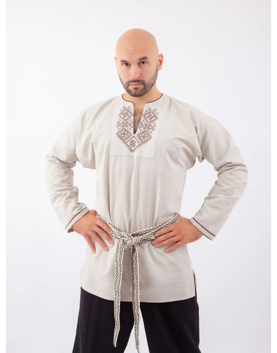 Le kosovorotka était un vêtement principal pour les hommes à n'importe quelle occasion de leur vie. Le style simple était toujours le même; la seule différence était dans la broderie. L'événement le plus important ést la décoration le plus beau et le plus riche. Surligné avec un élégant ruban brodé au col et à la poitrine. Une ceinture assortie complète "le regard". La Chemise russe est fabriquée individuellement en Russie. Les chemises russes kosovorotka sont populaires pour les festivals folkloriques, les événements culturels russes etc. Cette Chemise russe de kosovorotka est faite de haute qualité.
