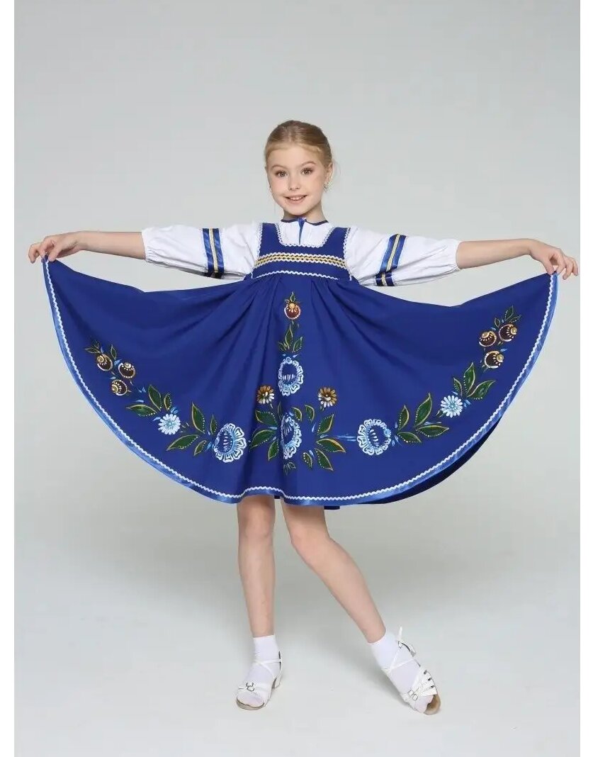 Cette robe russe se compose d'une blouse blanche et un sarafan cercle. La danse folklorique russe est populaire partout dans le monde grâce aux mouvements élégants et doux.