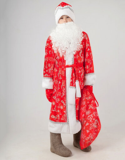 Le costume de Père Noël russe est sympatique et originel pour la fête de Nouvel An a la russe.