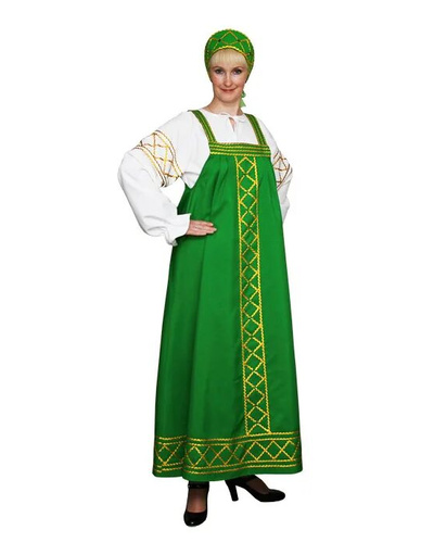This Russian stage costume consists of a blouse, a headpiece and a sarafan dress.